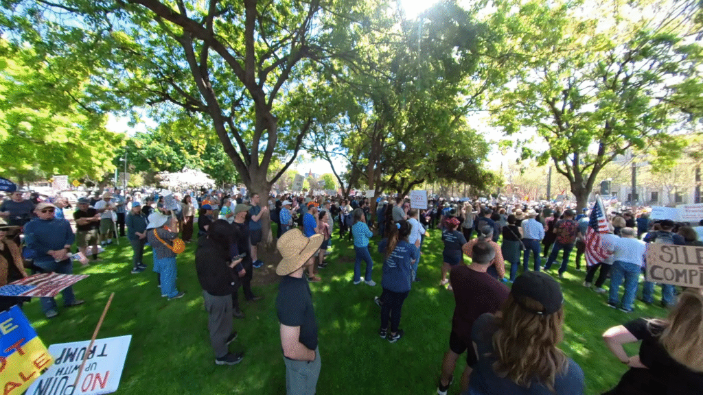 So-called Hands Off! demonstrations were organized for over 3 million protesters nationwide at 1,200 locations in all 50 states. More than 150 groups participated. These included civil rights organizations, labor unions, LBGTQ+ advocates, veterans, and elections activists. These rallies were peaceful, with no immediate reports of arrests or violence.