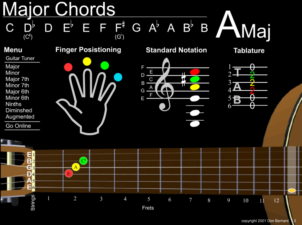 Learn to play Major and Minor chords and may others with this easy to use guide. Select a chord type