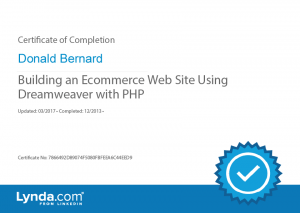 BuildinganEcommerceWebSiteUsingDreamweaverwithPHP_CertificateOfCompletionBy Don Bernard / May 14, 2017